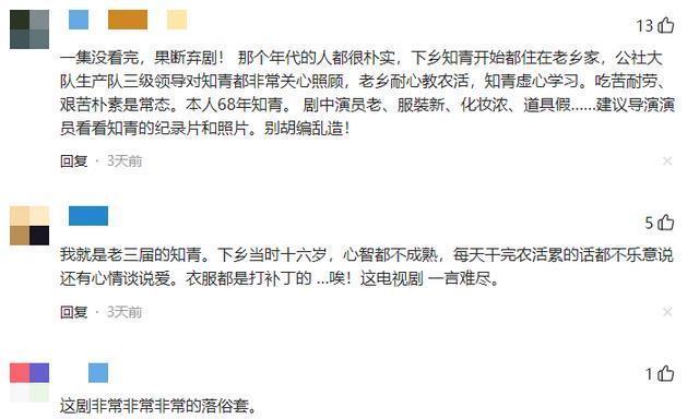 更有网友辣评,这些套路不应该放在这里,而更适合去现代狗血爱情剧里。 不得不说,网友们说的确实有几分道理。 更何况网友们也知道,关于知青题材的影视剧不好拍。