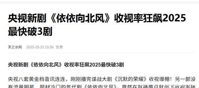 天之水网2025-10-22央视新剧《依依向北风》收视率狂飙2025最快破3剧