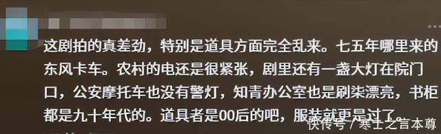 但是关键这是一部年代剧,还是物资非常匮乏的年代剧。 这一系列的操作,自然而然也引来了网友的吐槽。 在吐槽完剧情方面之后,就迎来了大家最注重的演技。